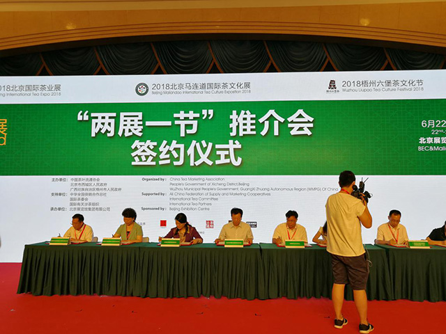6月22日,由中國茶葉流通協(xié)會(huì )、北京市西城區人民政府和廣西壯族自治區梧州市人民政府聯(lián)合主辦,北京展覽館集團有限公司承辦的“2018北京國際茶業(yè)展·2018北京馬連道國際茶文化展·2018梧州六堡茶文化節”在北京展覽館盛大開(kāi)幕。強壽集團董事長(cháng)李浪輝先生應邀參加此次展覽。