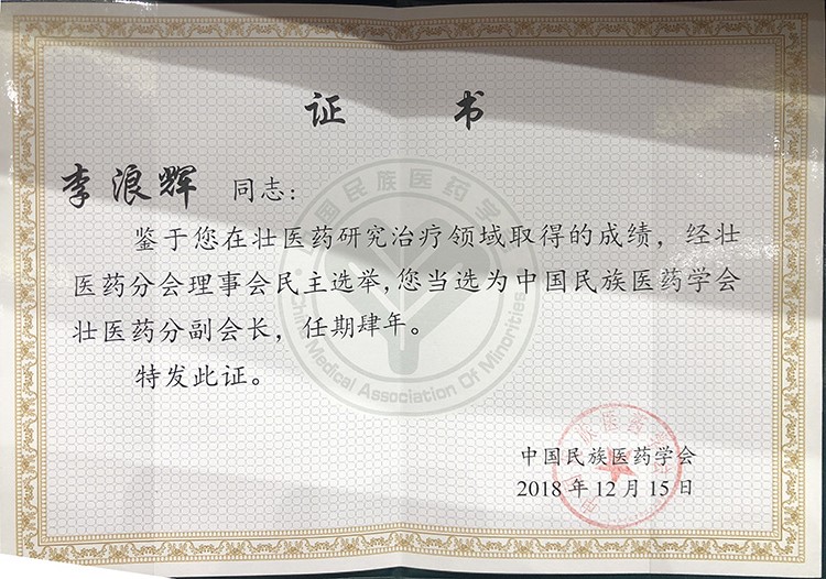 熱烈慶祝,12月15日,強壽集團董事長(cháng)李浪輝因壯醫藥研究治療領(lǐng)域取得的成績(jì),經(jīng)壯醫藥分會(huì )理事會(huì )民主選舉,當選為中國民族醫藥學(xué)會(huì )壯醫藥分會(huì )副會(huì )長(cháng)!!!
