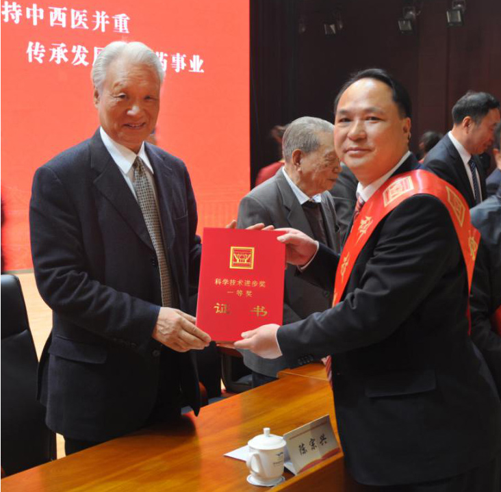 在本次大會(huì )上,由十一屆全國政協(xié)副主席陳宗興親自為廣西強壽藥業(yè)集團有限公司董事長(cháng)李浪輝(獲獎項目完成第1人)頒獎。